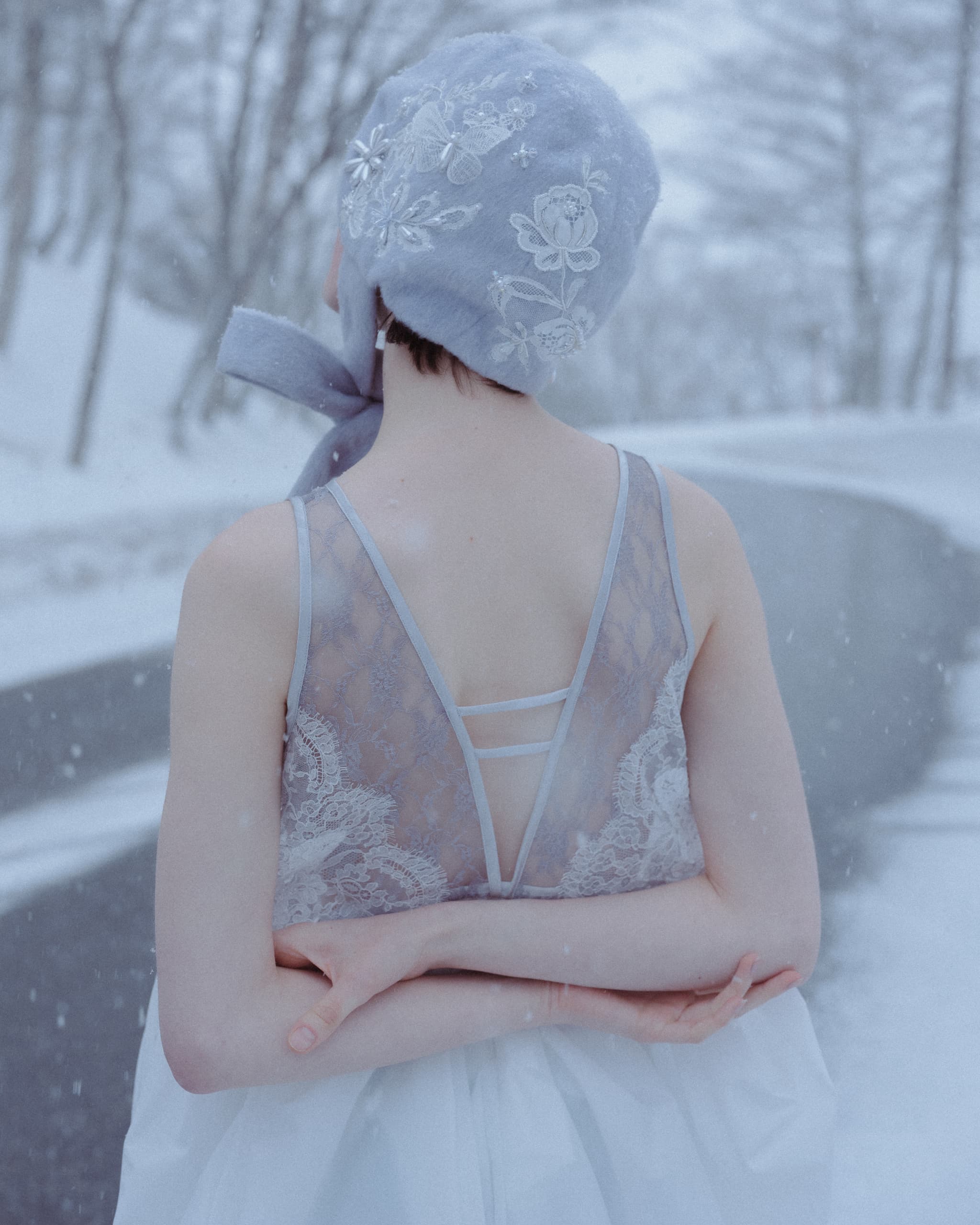 繊細なレースに一粒一粒、収まりどころを知っていたかのように美しく施されたビーズやスパンコール。
